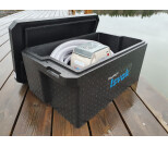 -Isolerad låda för luftningspump. Denna kan t.ex. skruvas fast på bryggan med genomgående skruvar.