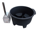 LAVO är möjligheternas badtunna. Du kan använda den som den är, fälla in i terrassen, klä in med trä eller varför inte sten? Den är lätt vilket gör att du enkelt flyttar den på två vuxna. Du kan alltså använda samma tunna både hemma och på sommarstugan. Denna modell är komplett med avtappning och genomföringarna för kaminen monterade.