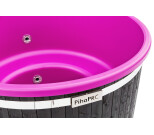 Den utvändiga kaminen i marinaluminium är dimensionerad för att snabbt värma upp badvattnet även i sträng kyla. Som tillbehör finns ett plastlock som håller för både snö och klättrande barn. Locket är vanligen på under uppvärmningen vilket ytterligare förkortar uppvärmningstiden.