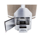 Den utvändiga kaminen i marinaluminium är dimensionerad för att snabbt värma upp badvattnet även i sträng kyla. Som tillbehör finns plastlock som håller för både snö och klättrande barn. Locket är vanligen på under uppvärmningen vilket ytterligare förkortar uppvärmningstiden.